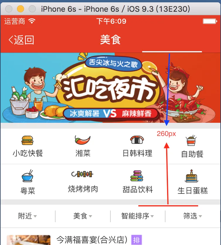 其次:计算组头到导航栏下边的距离。我将tableView分2组,第一组section表头高为260px,行高0.01,第二组section表头高为39px,则它距离导航栏顶部260px。