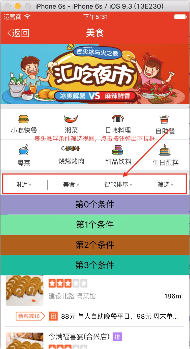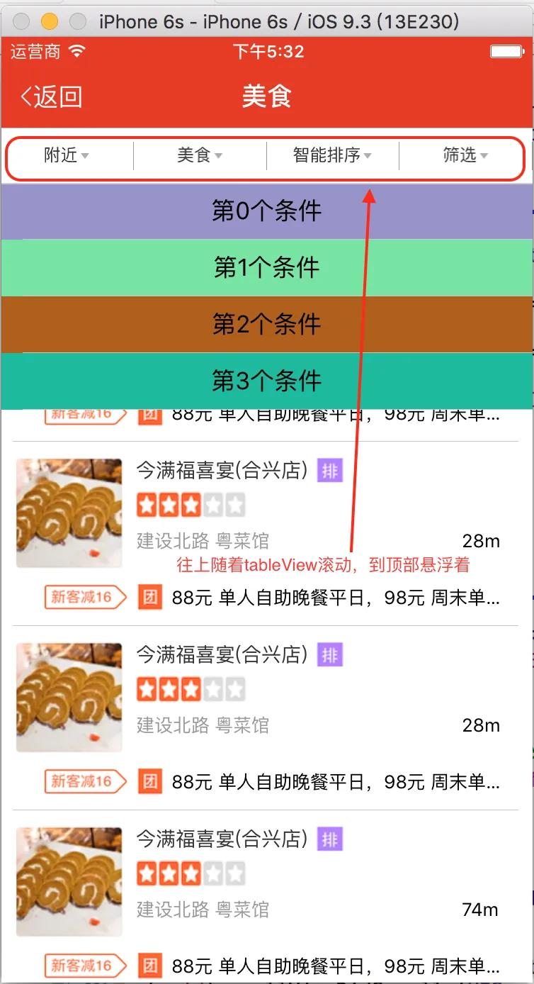 app中条件筛选视图是很常用的功能,一般它搭配着tableView的表头悬浮滚动使用,点击按钮时,就会弹出下拉框显示条件,选择一个条件后,下拉框自动隐藏。