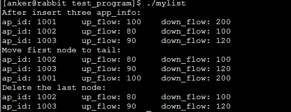 2 { 3 uint32_t app_id; 4 uint32_t up_flow; 5 uint32_t down_flow; 6 struct list_head app_info_head; //链表节点 7 }app_info;