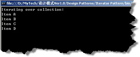 { ConcreteAggregate a = new ConcreteAggregate(); a[0] = "Item A"; a[1] = "Item B"; a[2] = "Item C"; a[3] = "Item D";