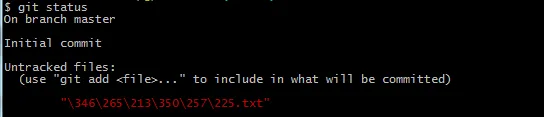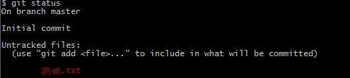 在Windows下使用Git时,事实上是存在乱码的问题的。比如,我的文件夹下有一个测试.txt的内容,但是用 git status 进行查看是,会出现中文乱码的现象。如下图所示: