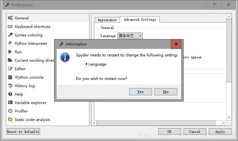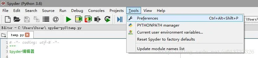 现在汉化已经完成,重新打开Spyder,找到Tools –> Perferences