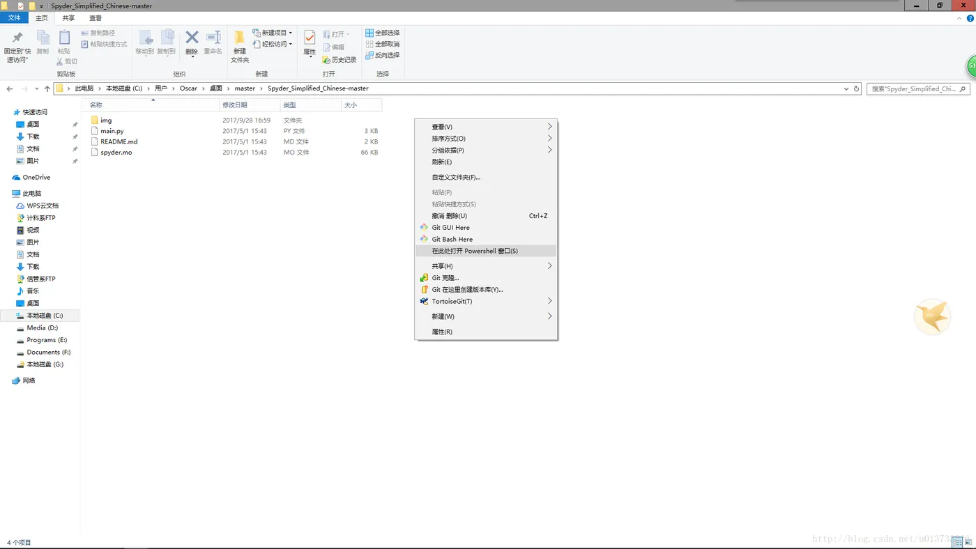 在这个文件夹内,按住shift,点击鼠标右键,就会出现”在此处打开CMD窗口(s)” 或者 “在此处打开Powershells(s)窗口“,如图: