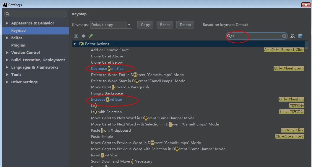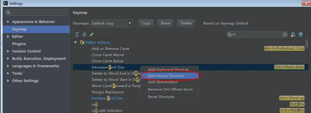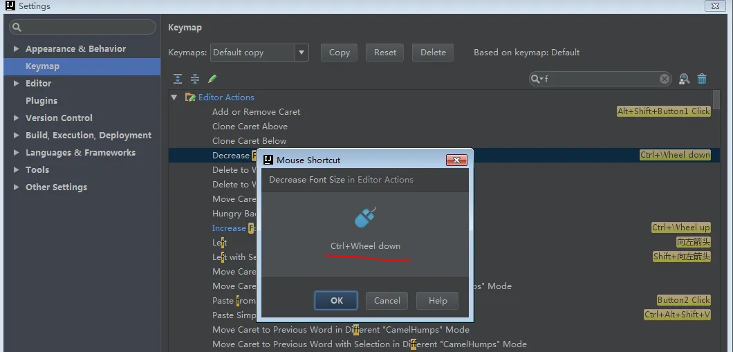这是在设置IntelliJ IDEA 代码字体的快捷键设置缩小: