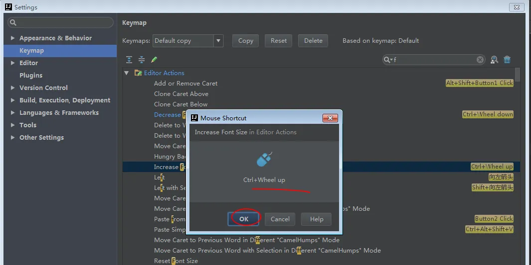 这是在设置IntelliJ IDEA 代码字体的快捷键设置放大:
