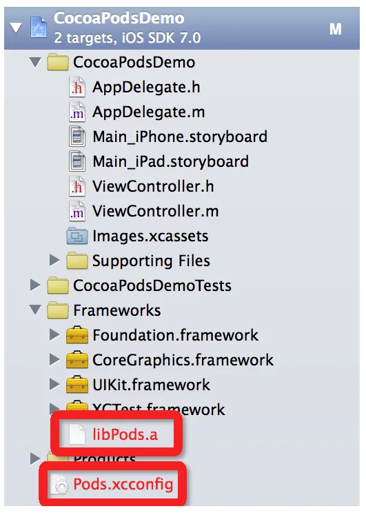 3.打开xcodeproj文件,删除项目中的libpods.a和Pods.xcconfig引用: