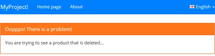 throw new UserFriendlyException("Ooppps! There is a problem!", "You are trying to see a product that is deleted...");