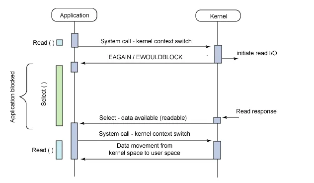 (7)如果遍历完所有的fd,还没有返回一个可读写的mask掩码,则会调用schedule_timeout是调用select的进程(也就是current)进入睡眠。当设备驱动发生自身资源可读写后,会唤醒其等待队列上睡眠的进程。如果超过一定的超时时间(schedule_timeout指定),还是没人唤醒,则调用select的进程会重新被唤醒获得CPU,进而重新遍历fd,判断有没有就绪的fd。