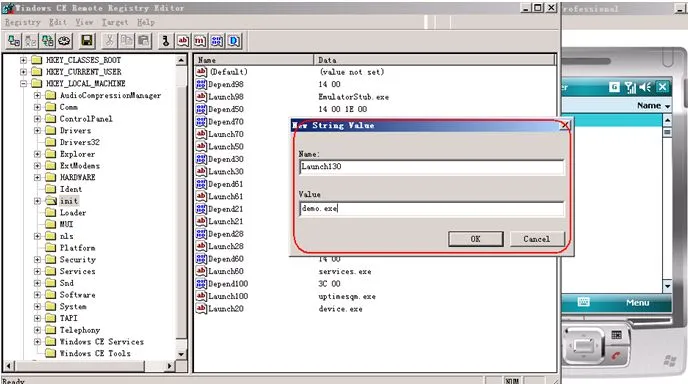 B.将应用程序拷贝到设备的\Windows文件夹,然后修改注册表,在HKEY_LOCAL_MACHINE\Init中加入新的内容,如下图9所示:
