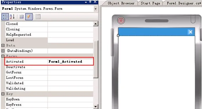 这个可以通过Form的Activated事件来解决,即在该事件中,把Form隐藏掉。如下图4所示,在Form的事件中,添加Activated事件响应函数如下: