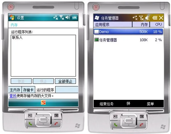 大家知道,在Windows Mobile上做自己的应用程序,会在“设置->系统->内存->运行的程序”中显示出来。在Windows Mobile 6.1以后,则由“设置->系统->任务管理器”代替了。如下图1所示: