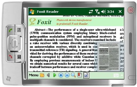 配合Foxit Reader,我们就可以在WM设备上浏览文献了,虽然确实是有点鸡肋.如下图9所示: