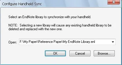 在PC上将文献信息搜索完毕以后,就可以将其同步到WM设备中去了。在同步之前,必须先设置一下需要同步的数据库,点击Tools-> Configure Handheld Sync,设置需要同步的数据库,如下图5所示: