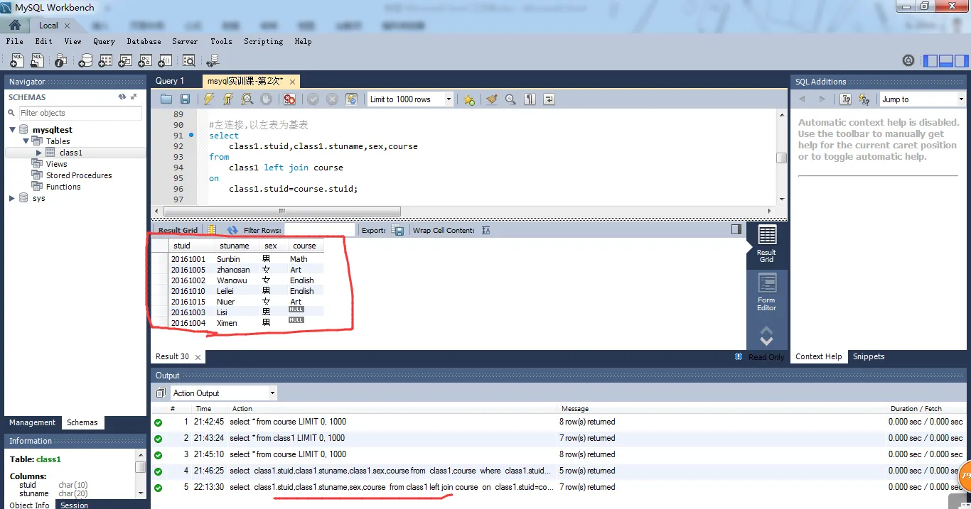class1.stuid,class1.stuname,sex,course