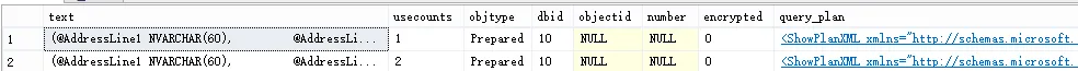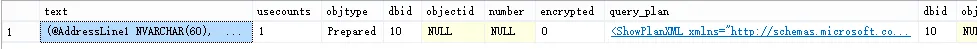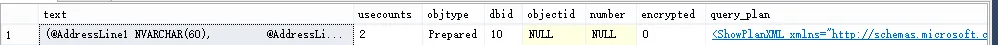 此时我们将外部变量StateProvinceID类型修改为SMALLINT,然后再来运行查询和缓存计划,此时会出现查询计划使用次数是为2,还是出现两条1呢?