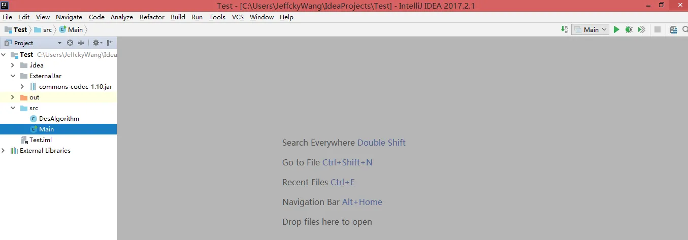 关于Java中序列化为XML文件就不搞了,我们首先需要讲解的是关于加密问题,由于是第三方是采用的DES加密,所以我们只讲解DES,有很多人可能有疑问了,这不过时了么且不安全,不必纠结,这个也不是你我能决定的问题,不在讨论范畴内。刚开始以为只是加密和解密而已,很简单嘛,况且网上的例子多如牛毛,慢慢发现是我太自信了,过后开始研究Java中加密的实现,网上文档如此说:Java中默认DES加密方式为ECB(电子密码本模式),而C#中默认DES加密方式为CBC(加密分组链接模式)这二者是最常见的DES加密方式,且加密key都为8位,其他的我们就不看了。而后看过各种Java和C#中DES加密文档,看到此链接文章时心里开始激动了:http://luanxiyuan.iteye.com/blog/1938348,结果一扫,文中所给的Java加密为CBC模式,而刚好对应C#中默认加密模式,,没毛病不是我想要的,再看看园中其他文章,恩,也挺好,作者给出了Java中的实现,C#中的实现也给出了,但是下面评论一看,加密或者解密出错,作者回复:在C#上未实践。我是没招了,搞了好久也没弄出来,最后还是没弄出来,老大搞定,我就等着吃现成的吧,事后我看了看代码,然后再次查了查资料发现其中区别,所以在这里作此备忘录。对此还特意下了个IDEA,玩玩Java,对比下java中C#中的实现,首先我们来看看Java中实现。原谅我没接触过Java,搞了两个小时才研究明白下载IDEA,破解IDEA,下载JDK,使用IDEA,导入包,调试java,本篇博客名称可以起名为:从Java到.NET,还是.NET好 ,结果很显然会喷,因为作为初学者没深入了解Java,所以还是老老实实起个正经博文名称。一边打开IDEA,一边打开VS,那叫一个卡啊。先看看安装最新IDEA 2017.2.1版本界面。