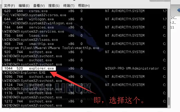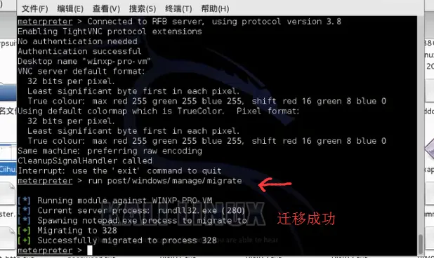 获得进程之后,我们通过migrate来注入到其中的一个进程里面去。