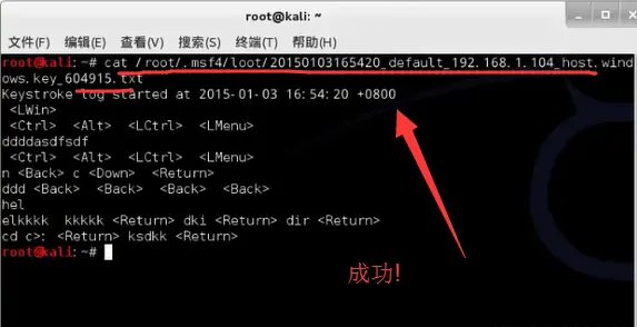 即,目标主机XP系统那边,的键盘记录,都将会存在这个文件里。