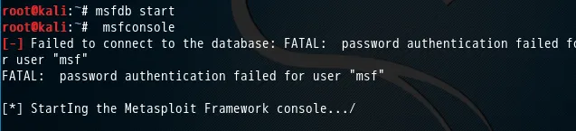 (kali2.0之前的命令是这样的:service metasploit start;对于2.0之后不管用)