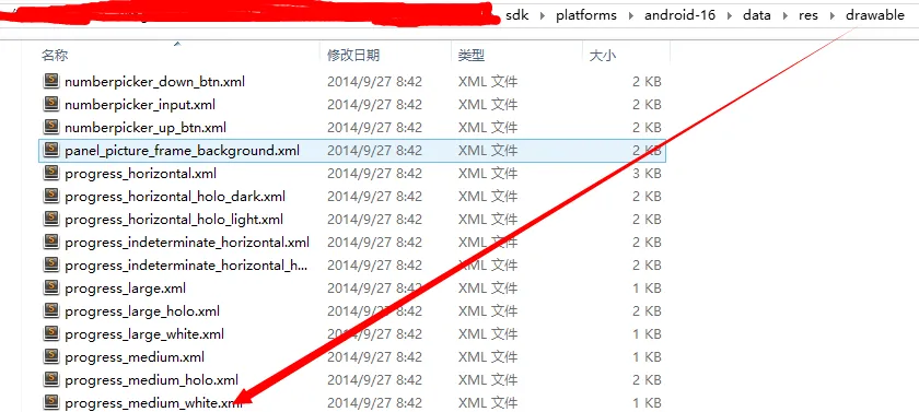 重新定义个Activity,里面只需要方一个ProgressBar就行,上面的样式是常见的,如果像对话框,进度条这种,有些样式自己也不是很明白的话,直接去sdk中找出来重写一下: