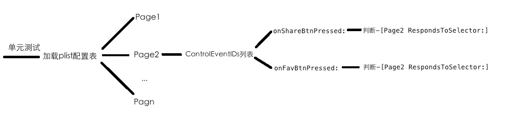 在单元测试中我们首先读取plist配置文件,遍历所有的页面。在一个页面内遍历所有的ControlEventIDs,对每个响应函数名进行respondsToSelector:判断: