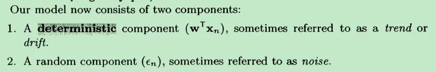 其中,ξ 用来表示“误差”---noise,x是训练样本数据,w是模型的参数。