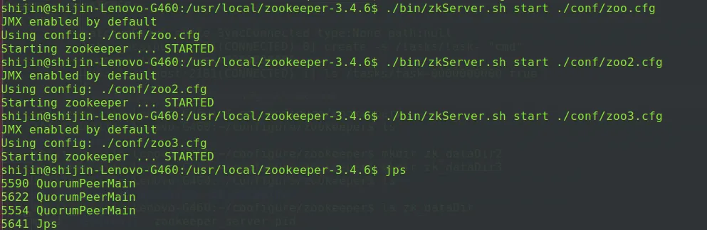 echo 1 > $dataDir/myid echo 2 > $dataDir2/myid echo 3 > $dataDir3/myid