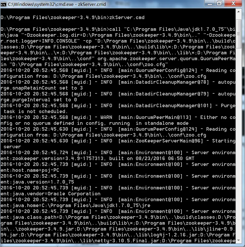 2016-10-20 20:59:06,068 [myid:] - INFO [main:Environment@100] - Client environment:user.dir=E:\workspace\eclipse-workspace\zookeeper