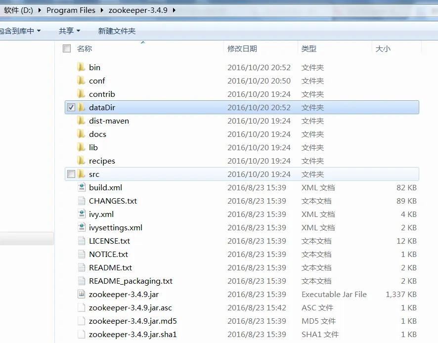 表示将dataDir指定为其转为目录的父目录下的 dataDir文件夹下(D:\Program Files\zookeeper-3.4.9\dataDir)