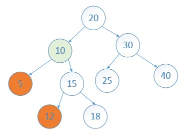 这里假设二叉查找树中的结点的权值存储是整型数字(见代码中的BinaryNode内部类),最低公共祖先结点如下:结点5 和 结点12 的最低公共祖先结点是结点10