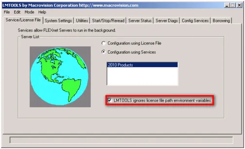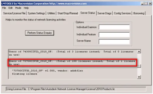 - 从您的授权服务器上运行LMTOOLS。开始àAutodeskàNetwork License ManageràLMTOOLS
