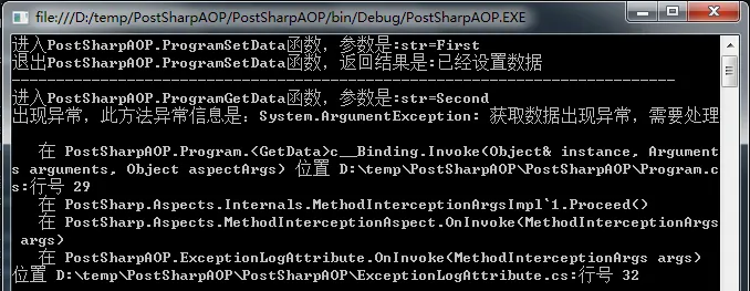 如需源码请点击 PostSharpMethodInterceptionAspect.zip 下载,运行效果如下图: