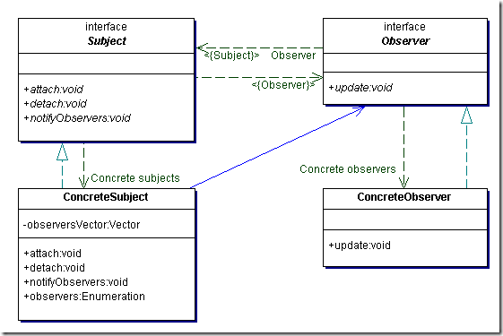 4个角色:被观察者(Subject/目标对象接口),具体被观察者(ConcreteSubject/具体目标对象),观察者(Observer),具体观察者(ConcreteObserver)