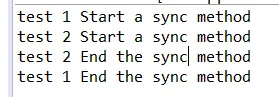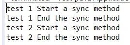 当把Test.java 中的MethodSync 变量 用 static 来修饰时,执行结果如下: