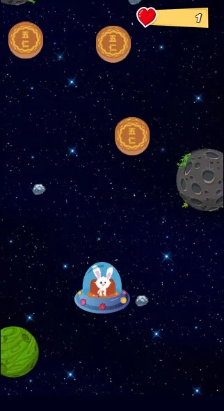 先来说说这个游戏,名字叫玉兔吃月饼,很有中秋的氛围哈~玩法非常简单,用手指触控屏幕来控制一只开着飞碟的兔子移动,天上会不停掉月饼,有好月饼和坏月饼之分,吃到好月饼就得分,吃到坏月饼就挂掉。主要逻辑就这么简单。看一下游戏的截图: