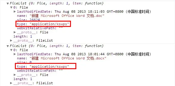 未安装WPS,获取到的doc和docx文件的type都是正常的