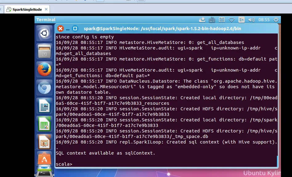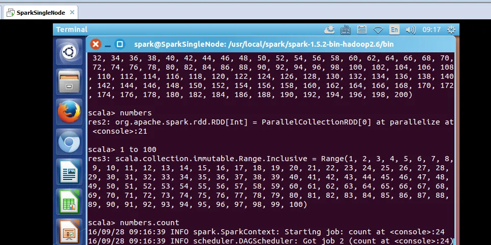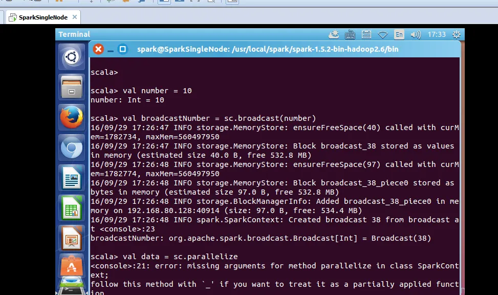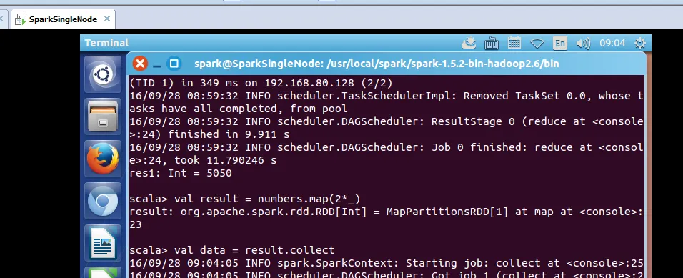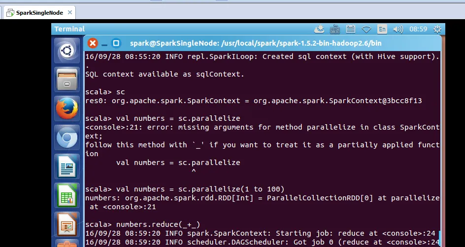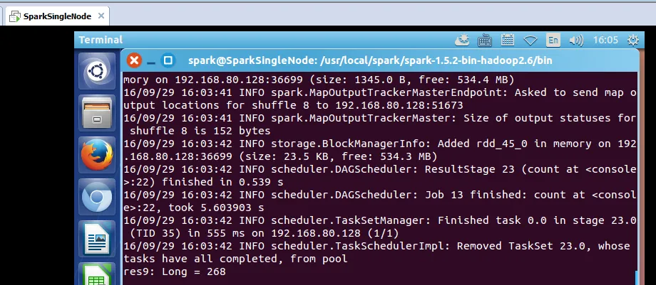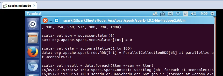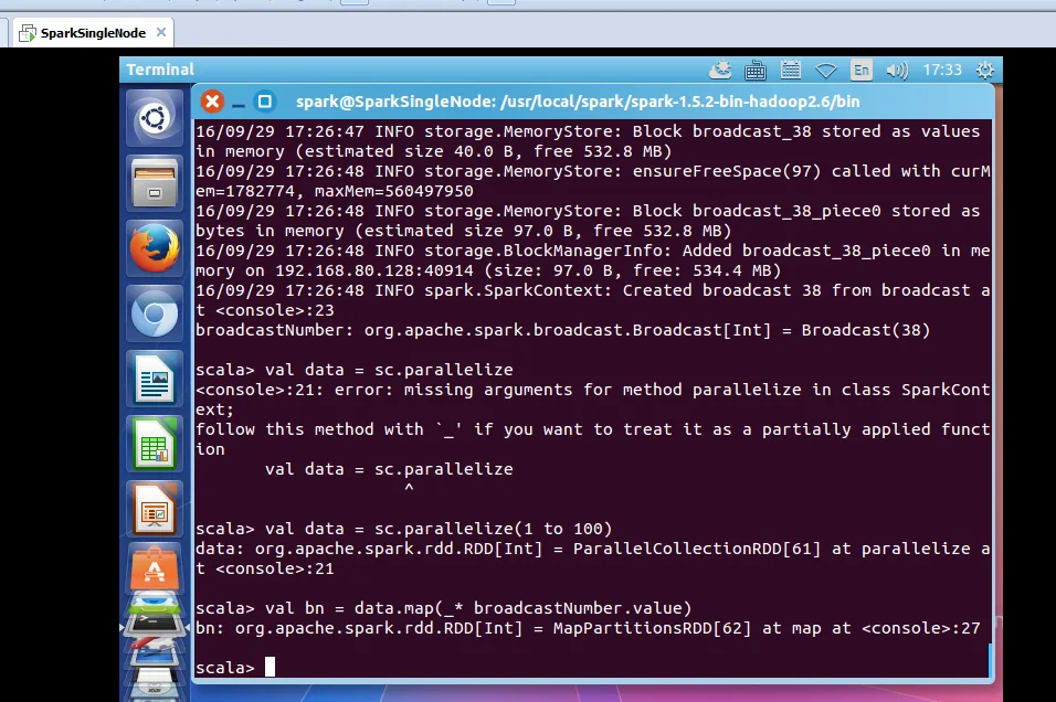 spark@SparkSingleNode:/usr/local/spark/spark-1.5.2-bin-hadoop2.6/bin$ ./spark-shell --master spark://SparkSingleNode:7077 --executor-memory 1g