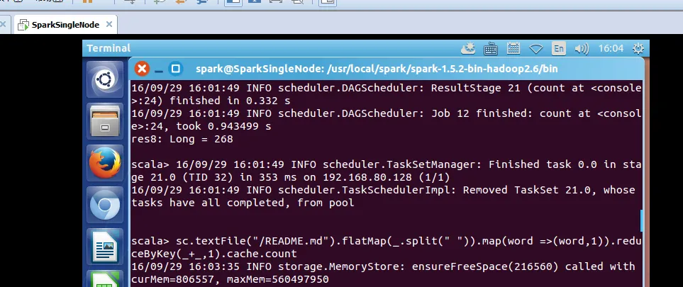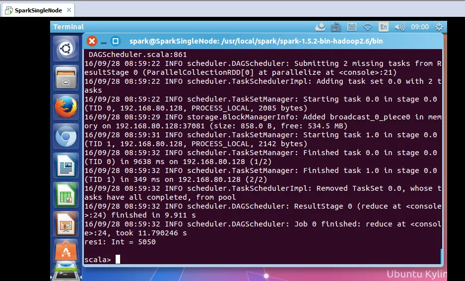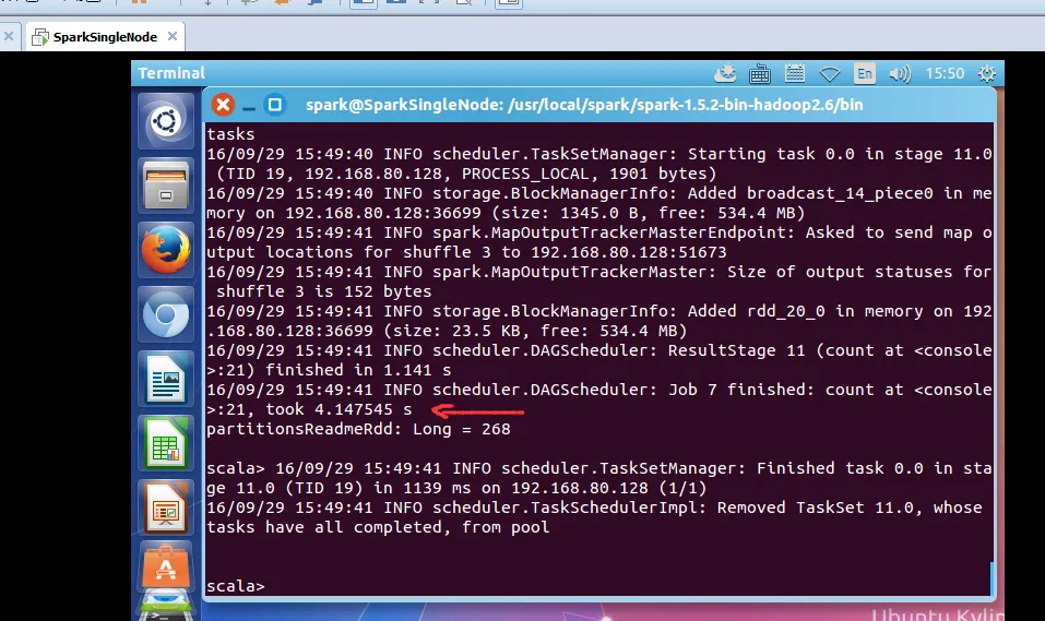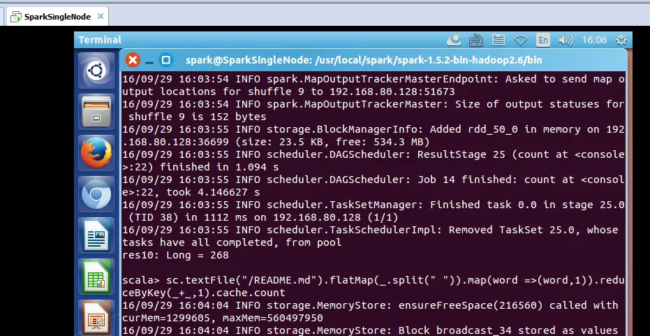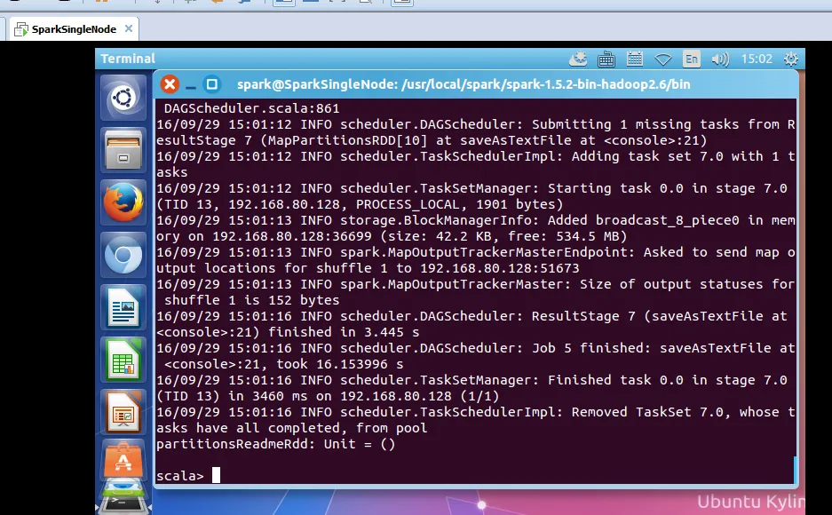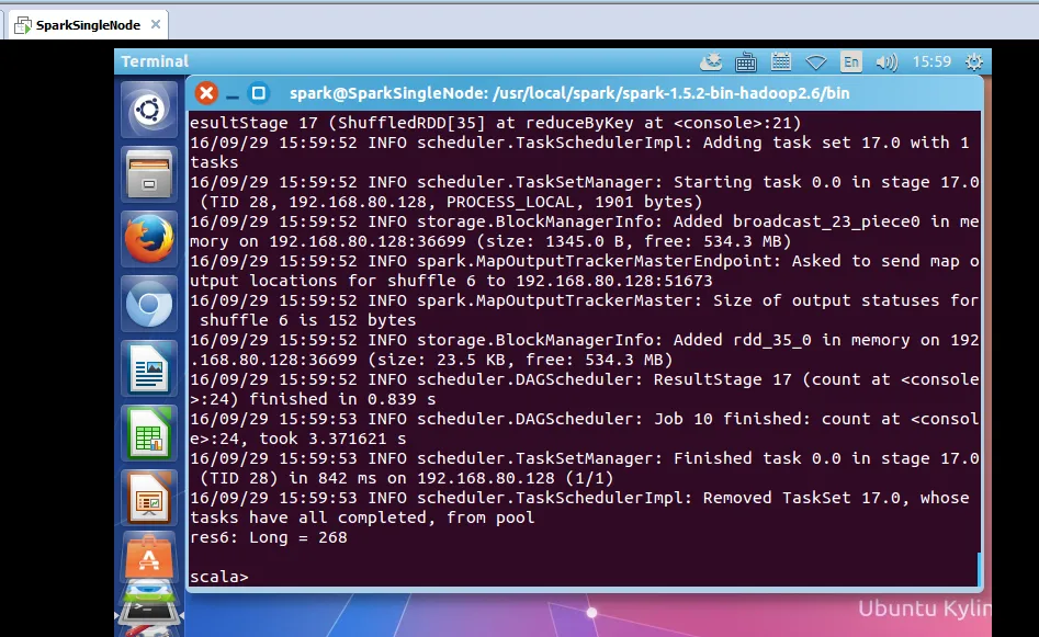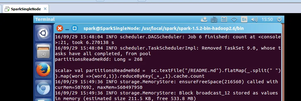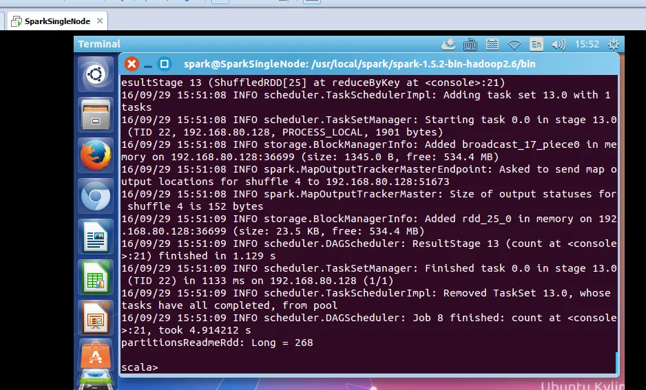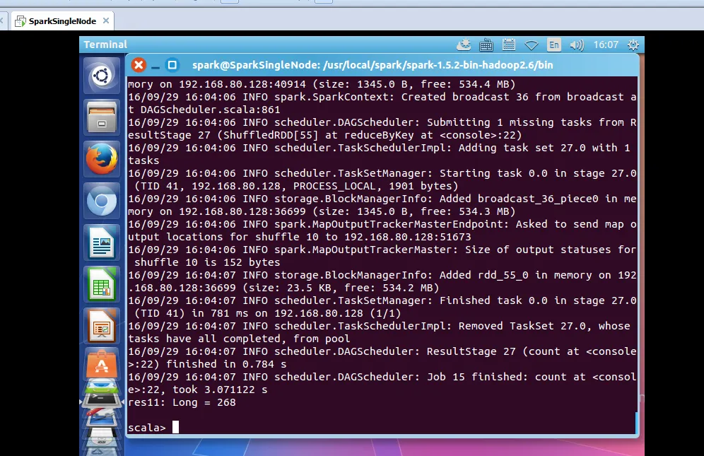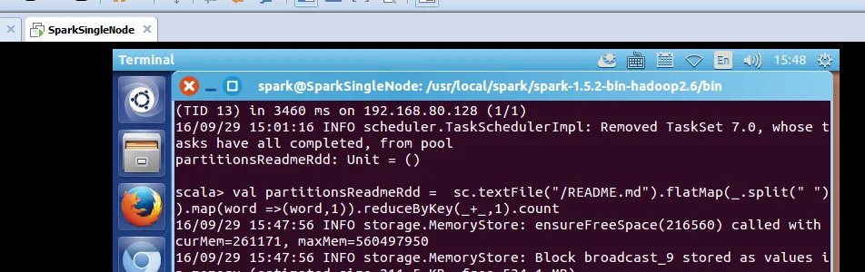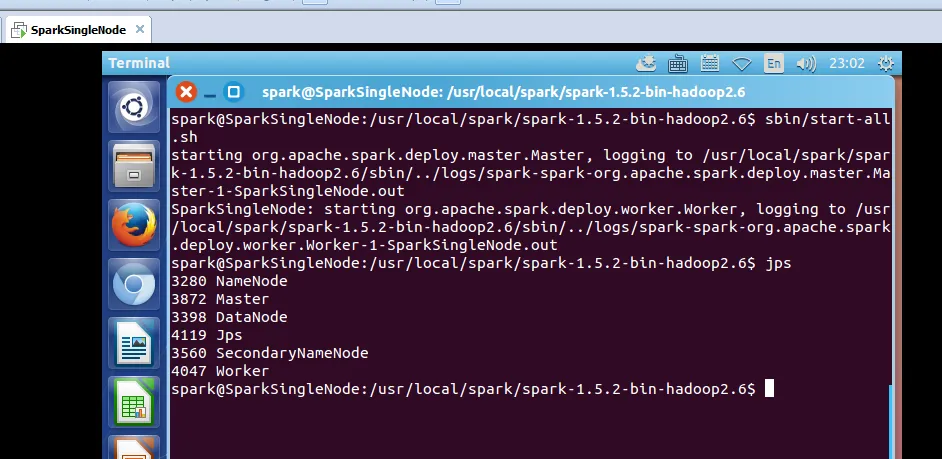 spark@SparkSingleNode:/usr/local/spark/spark-1.5.2-bin-hadoop2.6$ sbin/start-all.sh