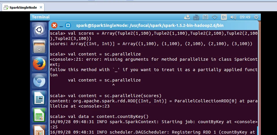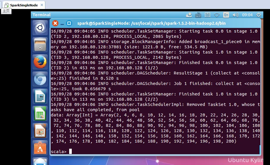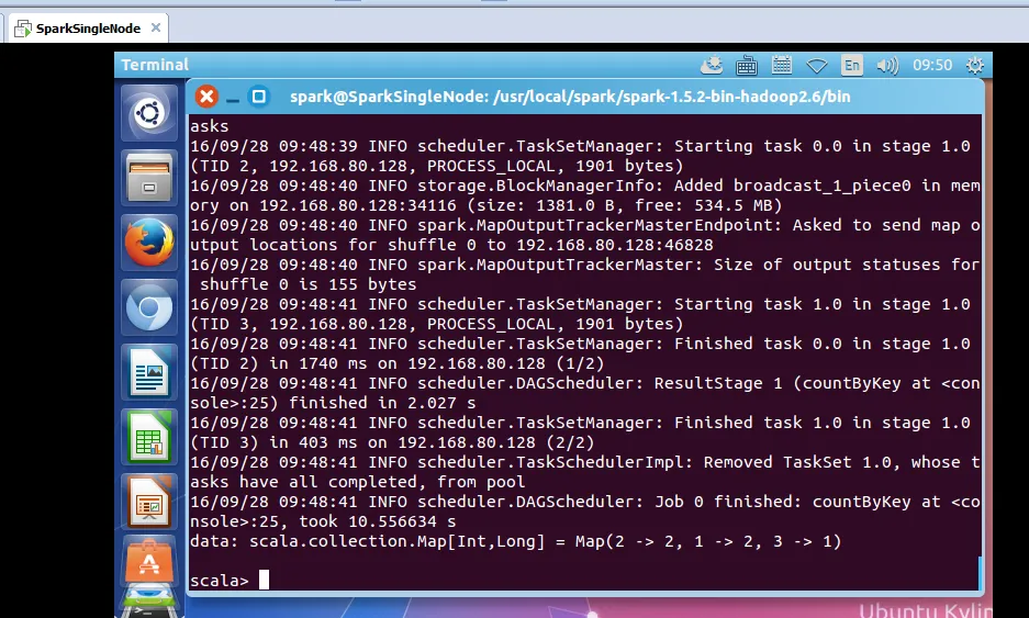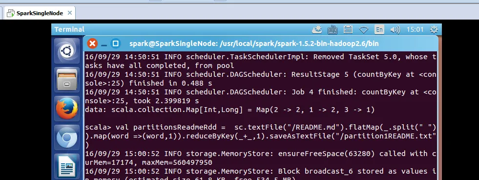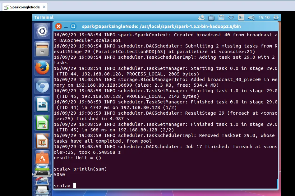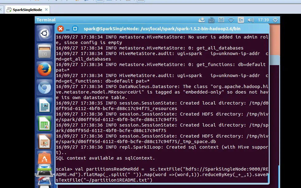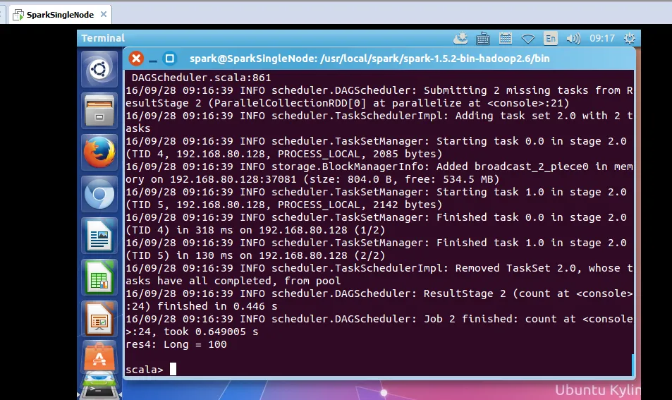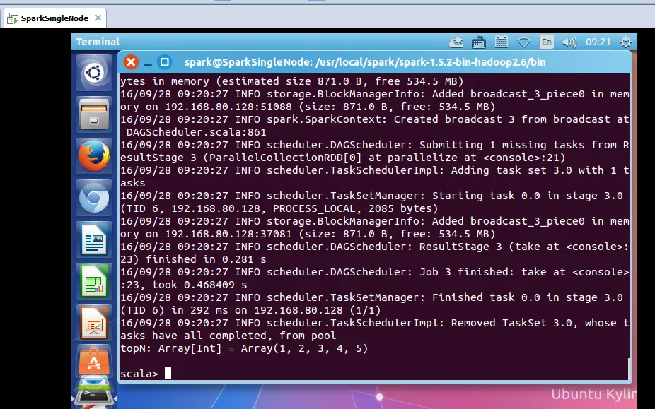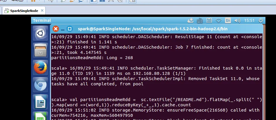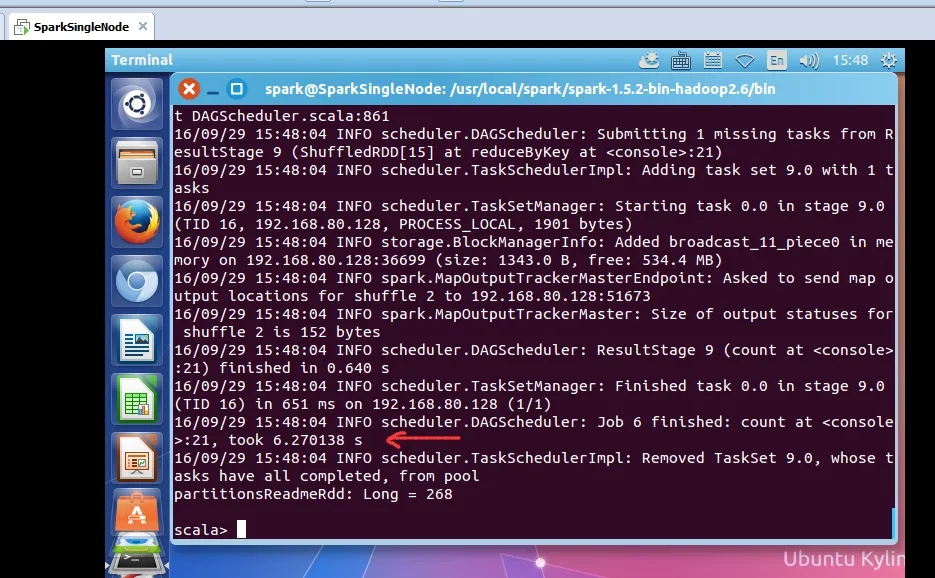 spark@SparkSingleNode:/usr/local/spark/spark-1.5.2-bin-hadoop2.6$ sbin/start-all.sh