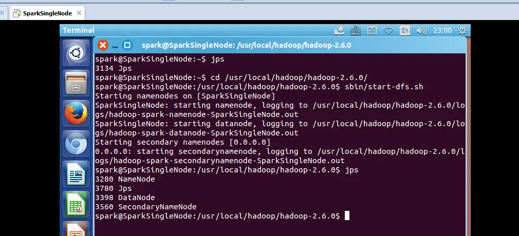 spark@SparkSingleNode:/usr/local/hadoop/hadoop-2.6.0$ sbin/start-dfs.sh