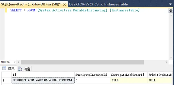 只需要这两行代码,就可以执行持久化工作。那么当下次重新打开工作流的时候,我需要从数据库中找到是那一条工作流实例数据,为了演示简单,我这里就将工作流实例的主键直接放到From窗体界面展示,而通常在工作中,我们是会用数据表来专门存储这些数据信息的。