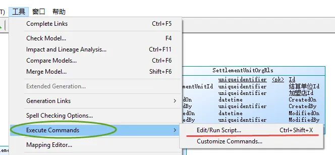 这样可以将code、name、type三项显示在ER图中,然后运行脚本,将注释comment的内容替换到code或name中,即可。