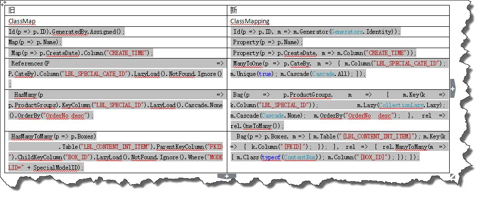 private ISessionFactory CreateSessionFactory(string sessionFactoryConfigPath, ISessionFactory sessionFactory) { // 如果没有匹配的 SessionFactory 则创建一个新的 if (sessionFactory == null) { Check.Require(!File.Exists(sessionFactoryConfigPath), "The config file at '" + sessionFactoryConfigPath + "' could not be found"); NHibernate.Cfg.Environment.UseReflectionOptimizer = false; Configuration cfg = new Configuration(); cfg.Configure(sessionFactoryConfigPath); var data = "EStore.Data";// System.Configuration.ConfigurationManager.AppSettings["Data"]; if (!string.IsNullOrEmpty(data)) { ModelMapper mapper = new ModelMapper(new MyInspector()); foreach (var assembly in data.Split(new string[] { ";" }, StringSplitOptions.RemoveEmptyEntries)) { MapModel(assembly, mapper); } var hbmMapping = mapper.CompileMappingForAllExplicitlyAddedEntities(); cfg.AddMapping(hbmMapping); } sessionFactory = cfg.BuildSessionFactory(); if (sessionFactory == null) { throw new InvalidOperationException("cfg.BuildSessionFactory() returned null."); } sessionFactories[sessionFactoryConfigPath] = sessionFactory; } return sessionFactory; } /// <summary>