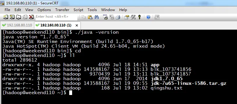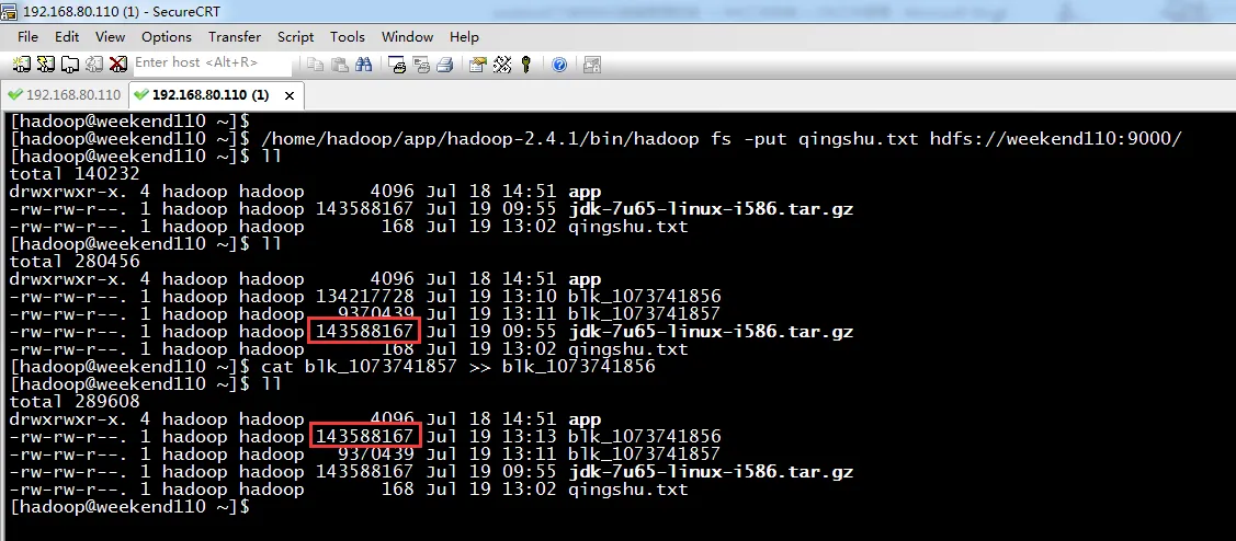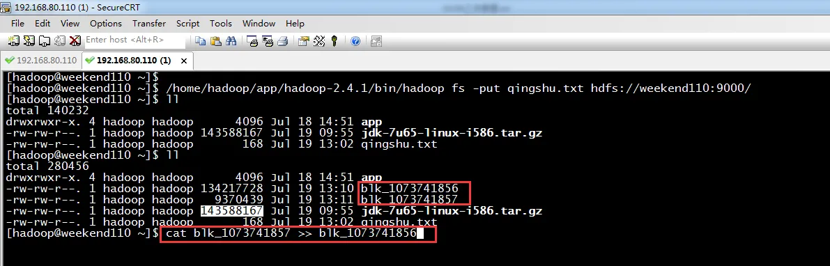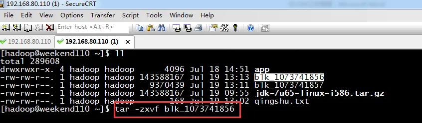 其实,此刻,blk_1073741856等价于jdk-7u65-linux-i586.tar.gz。