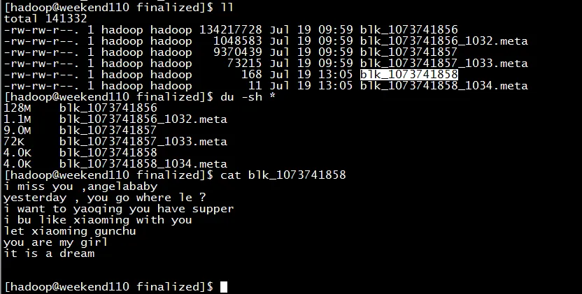 所以,文件被是切分成很多block,放到公共的datanode文件夹下。也可以合并,上述,就是合并,照样,达到复原。。。