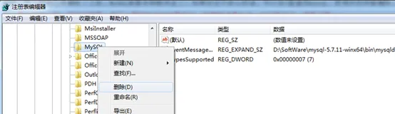 找到关于MYSQL的项把他们都删除,要一个项一个项的查找把他们都删除,这样在安装的时候就可以了。其实注册表里MySQL的项就是这三项: