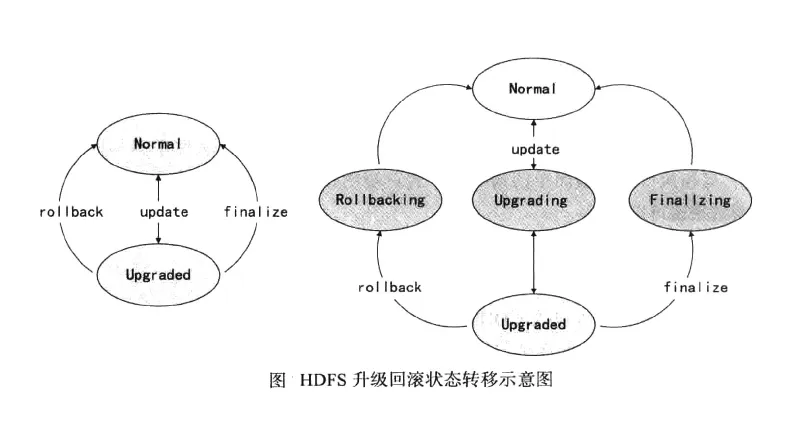作为一个大型的分布式系统,Hadoop内部实现了一套升级机制,当在一个集群上升级Hadoop时,像其他的软件升级一样,可能会有新的bug或一些会影响现有应用的非兼容性变更出现。在任何有实际意义的HDFS系统中,丢失数据是不允许的,更不用说重新搭建启动HDFS了。当然,升级可能成功,也可能失败。如果失败了,那就用rollback进行回滚;如果过了一段时间,系统运行正常,那就可以通过finalize正式提交这次升级。