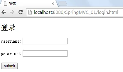 <%@ page language="java" contentType="text/html; charset=utf-8" pageEncoding="utf-8"%> <!DOCTYPE html PUBLIC "-//W3C//DTD HTML 4.01 Transitional//EN" "http://www.w3.org/TR/html4/loose.dtd"> <html> <head> <meta http-equiv="Content-Type" content="text/html; charset=ISO-8859-1"> <title>登录</title> </head> <body> <h2>登录</h2> <form action="login.html" method="post"> username:<input type="text" name="username" /> <p> password:<input type="password" name="password"/> <p> <input type="submit" value="submit" /> </form> </body> </html>