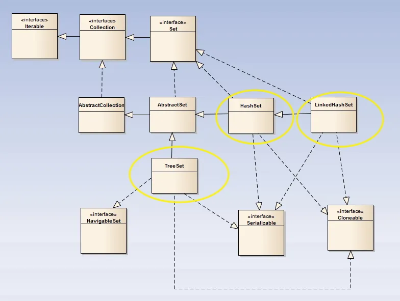 Set接口的实现类相对来说都比较简单,如果熟悉HashMap、LinkedHashMap、TreeMap源码的话,HashSet、LinkedHashSet、TreeSet的代码会很好理解,因为基本上都是调用对应Map的方法来实现的;