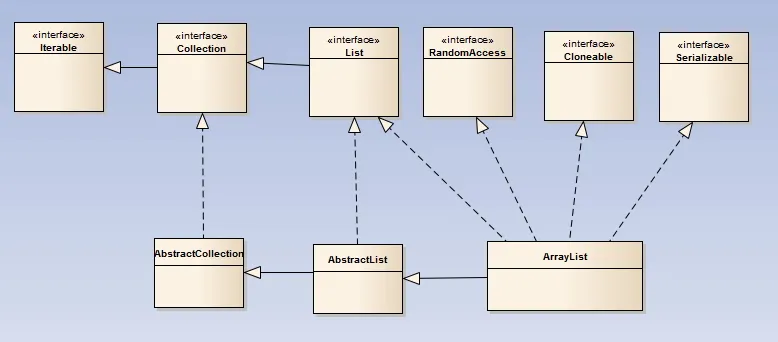 如下图,是与ArrayList相关的接口和类,下面将一一介绍各个接口和类中的方法;